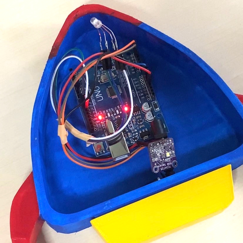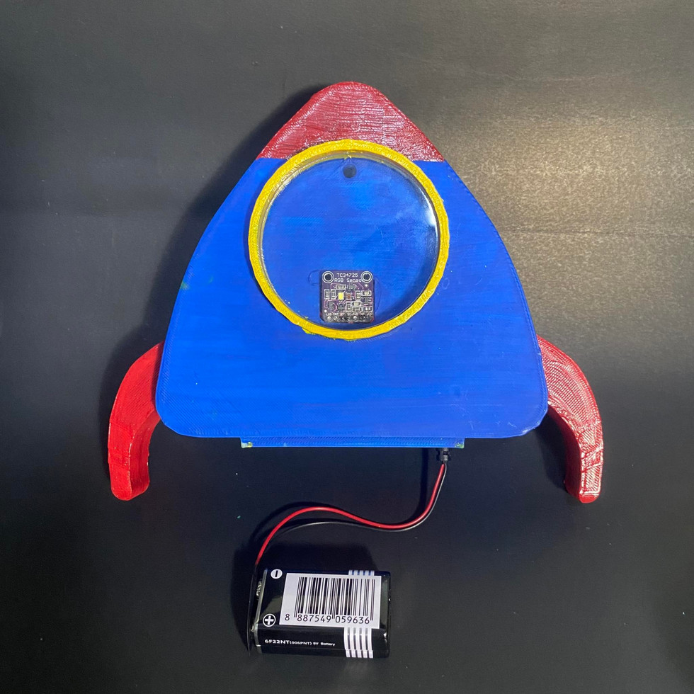 Color light sensor for children's toilet in public places that designed in the shape of a rocket. In addition to adding cuteness to the toilet, it can also show the light colors that tell the status of each toilet, for example, blue means the toilet is empty. Red means someone is using the toilet. and yellow means it is cleaning.